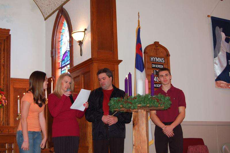 Diann Bittenbender, Magen Snyder, Renee Keiper, Devoe Breinich, Mark Bittenbender and Cody Eckhart presented a puppet show, titled "Stand Firm." The message was to build a firm foundation, trusting God, resisting peer pressure while learning to stand firm through life's storms.Diann Bittenbender did an outstanding job of making many of the puppets and costumes for existing puppets.Special music was led by The Praise Band, and RJ Cramer sang a solo.It was also the first Sunday in Advent. The Cramer family led the lighting of the first candle for Advent.After the service, members were invited to hang white crocheted angels on the Christmas tree. Many were purchased before the service and people placed pictures of family and loved ones in a special insert. Others wrote names of family and loved ones to honor and in remembrance.Afterward, a delicious brunch was served, made and hosted by the In-Betweeners.St. Matthew's UCC is over 230 years old, rich in history and community service. The church extends an invitation to everyone to come and worship with them every Sunday at 9 a.m. under the ministering of the Rev. Joseph Lachcik. There are Sunday School classes for all ages which begin at 10:30 a.m. every week.For more information, visit its website at