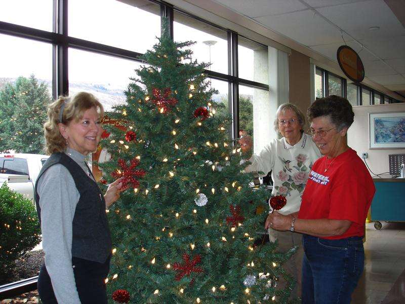 MARY TOBIA/SPECIAL TO THE TIMES NEWS Left to right: Barbara Hafer-Palmerton Concourse Club member, Trina Ely-Palmerton Hospital Auxiliary member and Barb Snell- Palmerton Concourse Club member have fun trimming a tree in the Blue Mountain Health Care, Palmerton Campus.