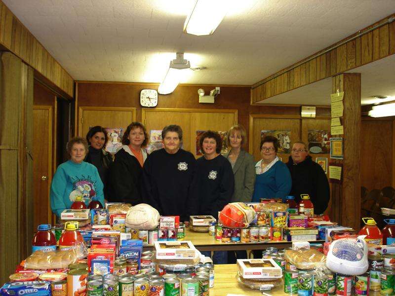 The Ladies Auxiliary of the R.W. Fritzinger VFW Post 7215 of Walnutport's 6th annual food drive was a success greatly in part to: left to right, Kathleen Grammes,Trustee; Crystal Kreidler, Auxiliary member; Pat Ohl, treasurer; Miriam Mack, senior vice president; Karen Bandzi, president and District 20 president; Sue Bortz, auxiliary member; Carol Resh, Gold Star Mother and auxiliary member; Crystal Butz, chaplin. Eight deserving families in the Walnutport and surrounding areas were presented a turkey and all the trimmings for their Thanksgiving meal compliments of the members of the Ladies Auxiliary. The turkeys were donated by Thomson's Meat Market, Slatington Fabricators and the Diamond Fire Company. The trimmings were purchased by the members through contributions received by community friends and neighbors during various donation stakeouts held at Redners Market in Northampton and Pathmark/Superfresh in Walnutport.