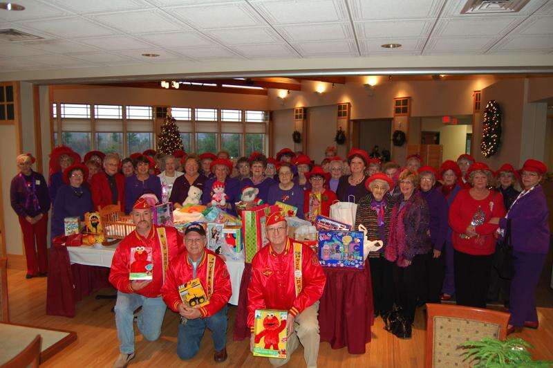 Each year the Marine Corps Leagues across the country collect donated toys for the Marine Toys For Tots Foundation. The toys are distributed to children who might not otherwise receive a Christmas present.Last year the Schuylkill-Carbon Marine Corps League Detachment 629 collected enough toys to give to 1,167 registered children.On Wednesday, Dec. 2, three members of 629 picked up toys donated to them by the Laurel Blossoms Red Hat Society at their annual Christmas get-together at the Blue Ridge Country Club."This is our third year of donating toys to Toys For Tots. Christmas is for children and we thought this was just a wonderful thing to do for the children," says Polly Lorchak of Jim Thorpe and Laurel Blossom's Princess.From the luncheon, the toys will be taken to the Salem Bible Fellowship Church, the local distribution center. The pastor, Robert Johnson, a veteran of the United States Marine Corps, also serves as Detachment 629's chaplain.Distribution of the toys will take place on Saturday, Dec. 12 from 8 a.m.-1 p.m.In order to receive these toys, children must be registered.Families have two last chances to register and that will be on Friday, Dec. 4 and Saturday, Dec. 5 from 10 a.m.-1 p.m. at the Community Thrift of Carbon County at 101 North 1st St. in Lehighton. To be eligible you must have a letter from your church or clergy, proof of public assistance or proof of unemployment. Only parents or legal guardians are permitted to register children and must have ID for themselves. For each child registered, a birth certificate and Social Security Card are required. The age limit is 14 years and handicapped children, 16 years.Santa's three helpers from Detachment 629, Eddie Glassic, Leon Frohnheiser and James McHugh, thanked the ladies for their generosity.Eddie Glassic says each member of 629 enjoys helping Santa Claus."When I wake up on Christmas morning, it gives me a great feeling knowing that there are children opening presents that maybe wouldn't have had any. That's why we do what we do."