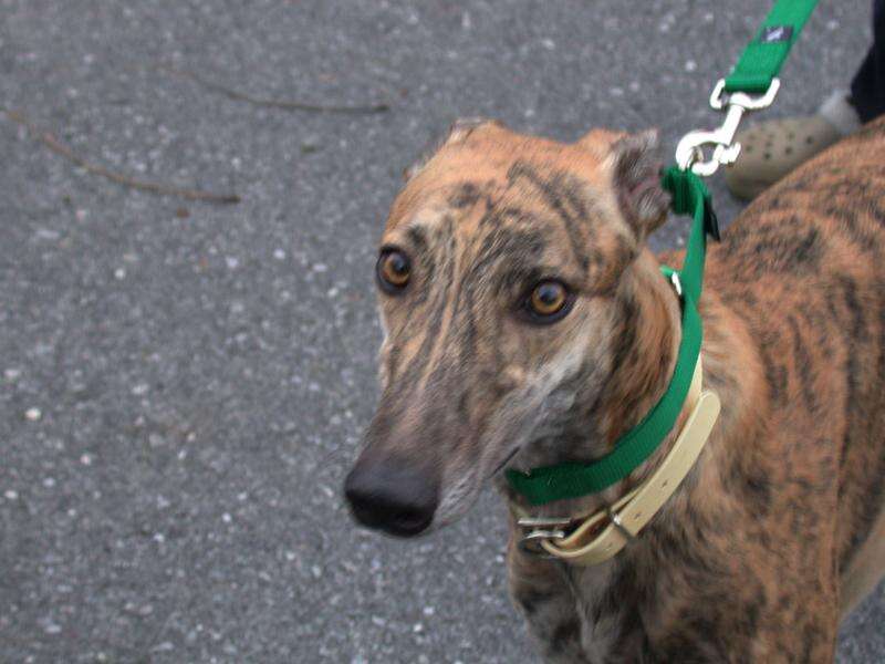 Dolce is a 3 year old female brindle greyhound looking for her forever home. She is cat-friendly and very sweet. For furtherinformation on adopting Dolce, or otheradoptablegreyhounds, please visit