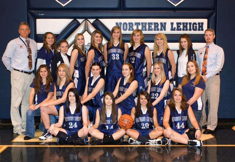 bob ford/times news Northern Lehigh girls basketball team members include, front row, from left, Timmi Fiske, Christina Bastardi, Rachel Barnett and Kristi Seiler. Second row, manager Payton Marunich, Emily Moore, Autumn Stauffer, Maggie LeVan, Krista Harakal and manager Samantha Gill. Back row, head coach Dave Oertner, assistant coach Andrea Nuschke, manager Marissa Fatzinger, Courtney Werley, Lauren Oertner, Aimee Oertner, Sonya Josephson, Rebecca Howell, manager Michelle Bingert and assistant coach Scott Gerould.