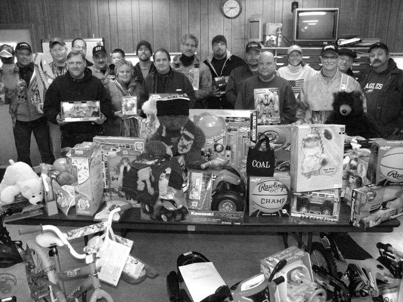 The employees of Lehigh Coal and Navigation Company in Coaldale chose to support the Schuylkill Carbon Marine Corps League 2009 Toys For Tots Campaign. In only two weeks, they raised hundreds of new-toys, to include bikes. LC&N Vice President Kathleen Bohannon-Curran said she is so proud of all the employees and how much effort they put into this first annual Toys For Tots collection. Pictured with some of their donations, from left, are Lehigh Coal and Navigation Jack Praskac, equipment operator; Bob Thompson, Mine Superintendant; Bob Smith, Chief Financial Officer; Bob Ciavaglia and son, Anthony, Lab Supervisor; Brian Bittner, Supervisor; Chris Davison, Plant Superintendant; Rob Bynon, Welder; Rudy Sheeler, Mechanic and Equipment Operator; Kathleen Bohannon-Curran, Vice President; Ed Rinda, Chief of Sales; and Dave Wolfe, Safety Supervisor. Pictured in front, from left, are Lehigh Coal and Navigation Brooke Weiss, Welder; Sharon Lauck, Human Resources, Brian Bevan, Supervisor; Doug Osenbach, Foreman; and Schuylkill Carbon Marine Corps League Detachment 626 Commandant James Laub.