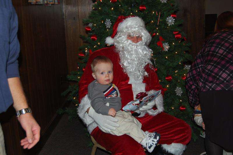 ELSA KERSCHNER/TIMES NEWS Hunter Sell receives a gift from Santa Claus.