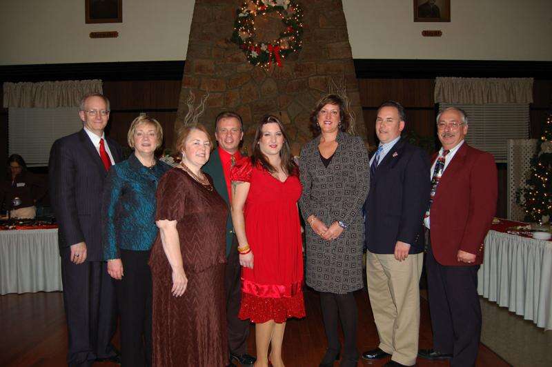 Carbon County Chamber of Commerce recently held a holiday networking gathering at the Lehighton American Legion. Among the sponsors were, from left, Pat Reilly, Kathy Schwick and Dianna Ahner, all of Mauch Chunk Trust; Michael Heery, CEO; Erica Heery, Eye for Design Studio and Old Mauch Chunk Model Train Display; Marlyn Kissner, Greater Lehigh Valley Chamber; David Althouse, CCCC chairman; and Wayne Nothstein, Carbon County Commissioner. Also sponsors were Kovatch Enterprises, PenTeleData, PPL, Mark Sverchek, Mark Sverchek Insurance Agency; and Magic WMGH Radio.