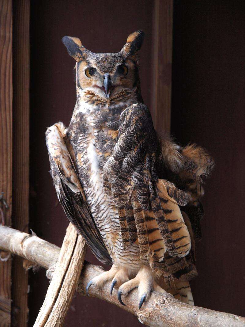 AL ZAGOFSKY/SPECIAL TO THE TIMES NEWS A male Great Horned Owl on a perch at the Carbon County Environmental Education Center. The Center keeps only injured animals that can't be returned to the wild. Because of their injuries and confinement, these birds won't breed even though breeding season is approaching. The CCEEC has four Great Horned Owls.