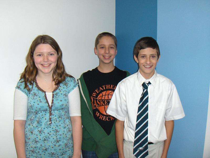 SPECIAL TO THE TIMES NEWS Weatherly Geography Bee winners include, from left, Shannon Kelly, Sean Barnesevitch and Michael Grega.