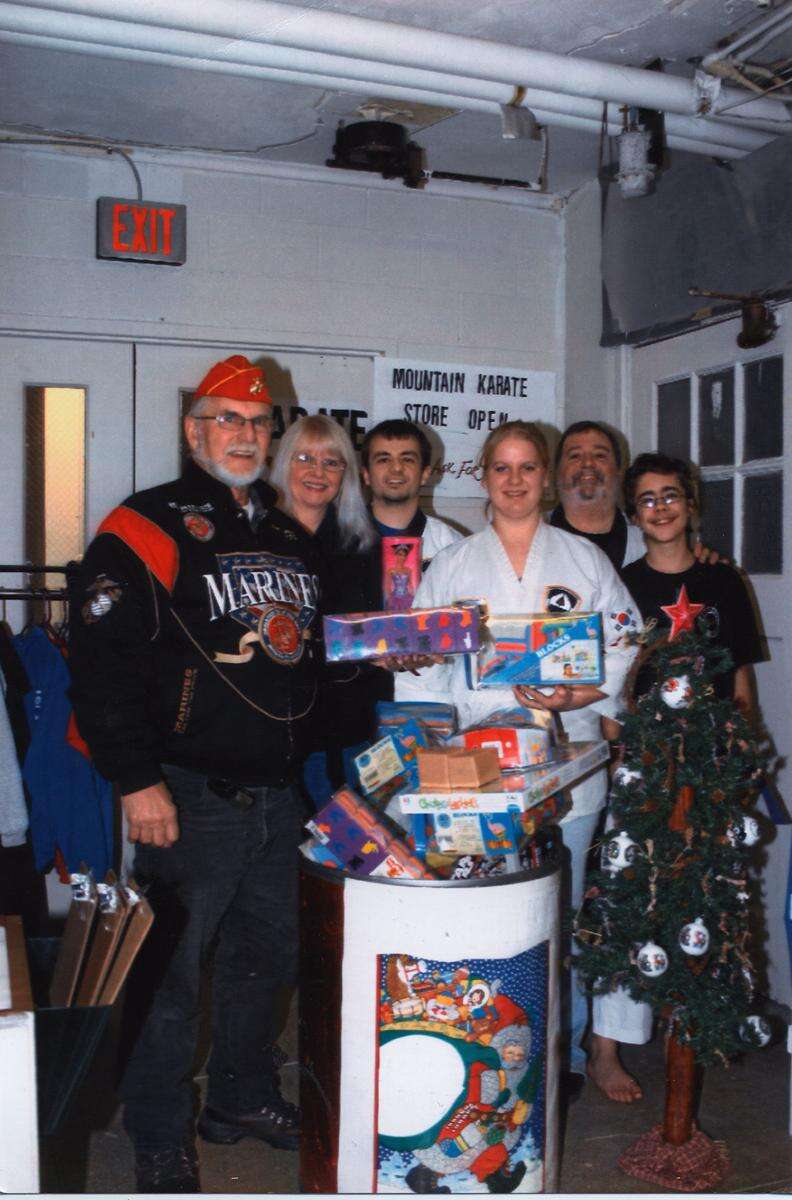 Mountain Karate Academy, Lehighton, assisted the Carbon-Mountaineers Marine Corps League Detachment 996 with the annual Blue Mountain Food and Toy Drive, which provides food and toys to needy families during the Christmas holidays. From left are, Nick Hawkey, coordinator of the food and toy drive; and Sharyl and Paul Maglionico; Stevi Lenahan, Rich Maglionico; and Michael Slegel. The students also participated in the Blue Mountain Food and Toy Drive project in 2008.
