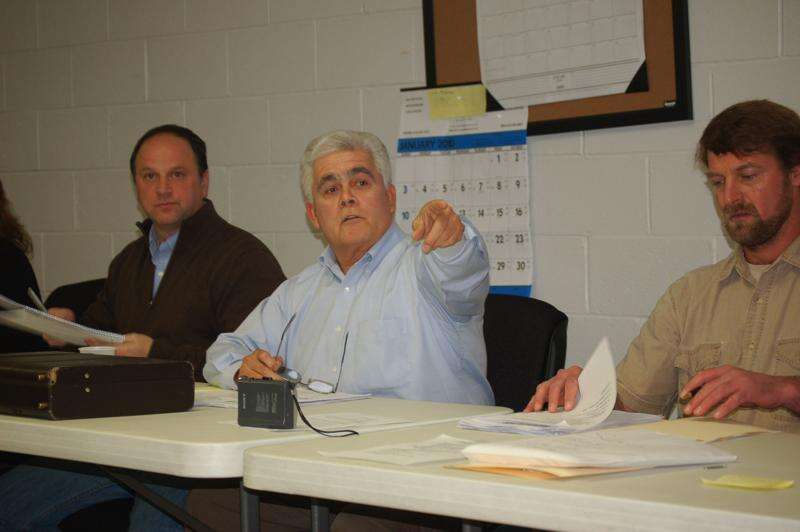 JOE PLASKO/TIMES NEWS Alfonso Martinez (center) recognizes a member of the audience during Monday evening's West Penn Township Board of Supervisors meeting. Martinez was elected to chair the board. At left is Supervisor James E. Akins, with Vice Chairman David Zeigler at right.