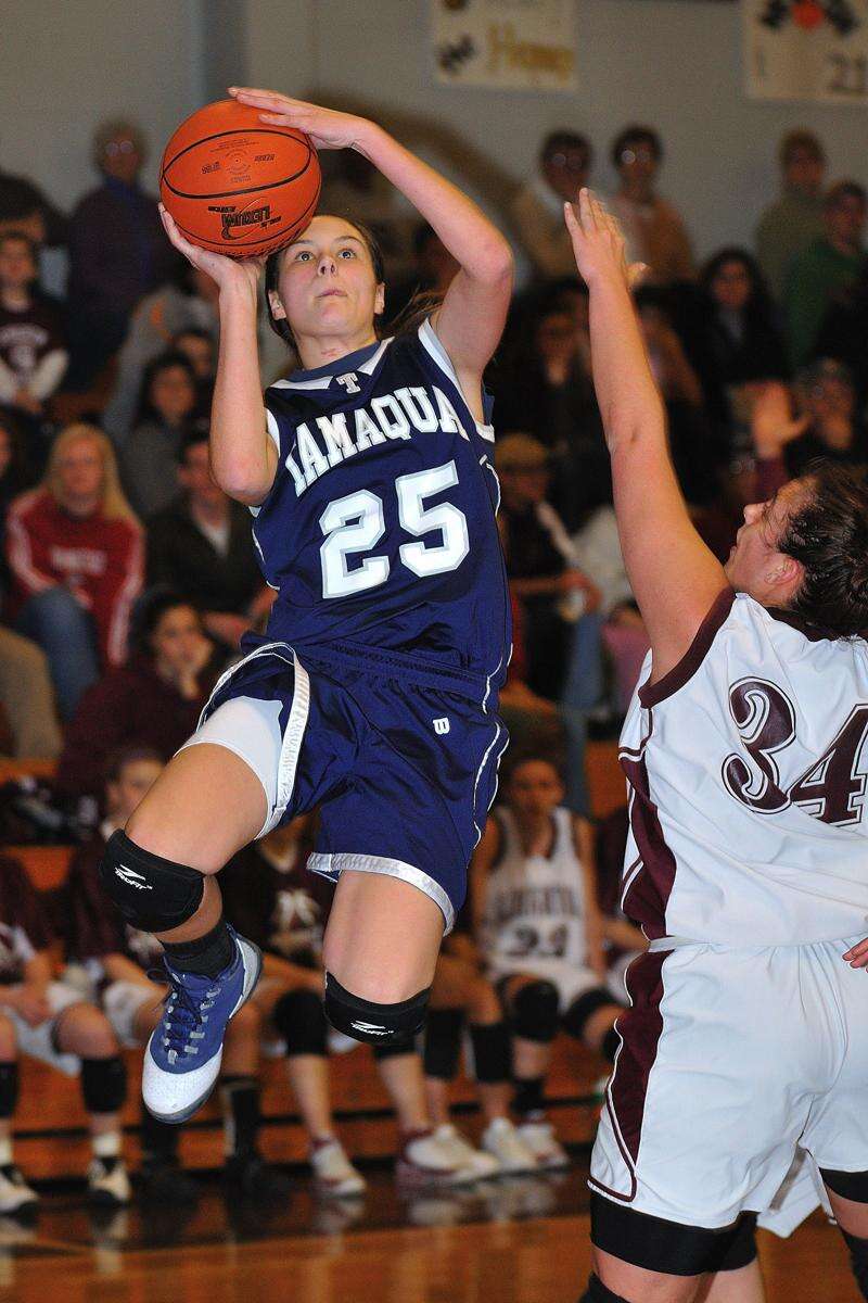 On Dec. 1, Zehner discovered she would have to undergo an appendectomy, and Lady Raiders coach Joe Berezwick contemplated preparing his team to go without his 5-11 scoring leader.Tamaqua proved to have the ability to circle the wagons under adversity last season, regrouping after starting guard Allison Updike went down with a knee injury and winning its first District 11 Class AA championship since 1978.Zehner, however, never gave the Raiders a chance to miss her.When Tamaqua tipped off the season on Dec. 12 at Northwestern Lehigh, there was Zehner in the starting line-up, pouring in 19 points.Zehner hasn't missed a beat since then. In fact, she has put up better numbers so far than her All-State season of a year ago, when she averaged 16.8 points per game.In Tuesday night's 49-34 Tamaqua victory at Tri-Valley, Zehner had a double-double, pumping in a season-high 21 points and grabbing 15 rebounds as the Raiders remained unbeaten at 7-0.To date, Zehner has netted 124 points, good for 17.7 points per contest. She now has 829 for her career, good for 16th place on the all-time Lady Raiders' scoring list as she surpassed Adriane Miller's 820 points this week."I'm really excited to be back on the court," said Zehner, who was named Most Valuable Player of the Southern Lehigh Tournament, leading Tamaqua to the title with 38 points in victories over Harriton and So. Lehigh. "I was really down on myself when I first found out I needed it (the appendectomy). My goal was to get out here as fast as I could with the doctor's permission, play hard and pick up where I left off."I wasn't going to miss my first game, so I told the doctor he'd better do something, because I was going to play whether he would let me or not," she added. "I feel 100 percent. Everything is fine."Berezwick is obviously relieved Zehner is back and playing at her accustomed high level. The Raiders are 46-14 with her in the line-up during her career."I was looking at the calendar, thinking she might not be back until the new year," related Berezwick. "Being from the 'Old School', I remember something like this being a 4-6 week deal, depending on how severe it was."She caught it in the early stage, and we're thankful for that, but to get her back as quickly as we did, in less than a week, is remarkable. She's playing outstanding basketball. I don't want something like that to happen to anyone, but that's Amy. She wanted to get back in there."The Raiders had to replace one starter, Kristin Kistler, as well as key reserves from last year's District winning squad. Updike, a junior, is healthy again and has been moved inside to form a strong one-two punch with Zehner. Senior Elissa Streisel is back running the show at point guard and is a three-point threat from the perimeter, and sophomore Kayla Hope's speed is as asset in the backcourt.Junior Cassie Eroh started the season at forward but has switched positions with Updike to take advantage of Eroh's shooting touch outside."We're slowly getting back to where we were last year," stated Zehner. "I'm just trying to play my role with the team, whatever it takes for us to win. Everybody has us highlighted on the schedule, but I just have to forget about that stuff and play my game.""I think we're getting there," said Berezwick. "It's a long road yet. There are going to be bumps in the road, as well as highs, but it's the long run you have to play for, and hopefully we can keep it together."One thing is certain: Zehner will come to play each night. The red cape is optional.**********LADY BULLDOGS BITE TWICE ... The Northern Lehigh girls' basketball team has started the season 9-0 (5-0 CL) and has won two tournament titles in the process.The 'Dawgs first title came in the Fleetwood Tip-Off Tournament on Dec. 14. They defeated Tulpehocken in the final game, 51-18. Northern Lehigh's second title then came in the Indian Classic on Dec. 29, when they knocked off host Lehighton, 59-38.Aimee Oertner was named the MVP of both tournaments. The sophomore racked up 38 points in the first tournament and 37 in the second.**********A LITTLE BIT OF EVERYTHING ... Weatherly's Keith Barna recently accomplished a major basketball feat. Barna recorded a quadruple-double in the Wreckers' 82-66 victory over Columbia Montour on Dec. 23.Barna scored 31 points, grabbed 11 rebounds, dished out 10 assists and made 10 steals. He made eight field goals in the game (one three-pointer) and converted on 14-of-18 free throws.**********INJURY BUG .... Several area teams have been hit hard with injuries to star players early in the season.The Marian boys, the Tamaqua boys, and the Jim Thorpe girls all recently lost their leading scorers for several games with leg injuries.The Colts' Matt Yaich suffered a knee injury during a practice back on Dec. 17. Originally it was feared that Yaich's injury might be to his MCL, but it was later diagnosed as a bad knee sprain.Yaich was re-examined on Tuesday and was cleared to begin light practice with a brace on. He won't be able to play a game, however, until at least Jan. 15 when he will once again have the knee examined.Yaich averaged 17 points through the Colts' first three games, but has now missed six straight contests.The Raiders' Anthony Bumbulsky, who is leading his team with a 14.6 ppg. average, has missed the last two games after hurting his ankle. Bumbulsky didn't see any action in Tamaqua losses to Hamburg and Salisbury.The Lady Olympians' Celeste Robinson is also battling a knee injury. Robinson was hurt in the first quarter of her team's game with Pine Grove on Dec. 21. She tried to return to the line-up during the first round of the Lady Indian Holiday Classic, but was only able to play a few minutes against Northern Lehigh before leaving the game. Robinson has sinced missed games against Palmerton and Panther Valley.