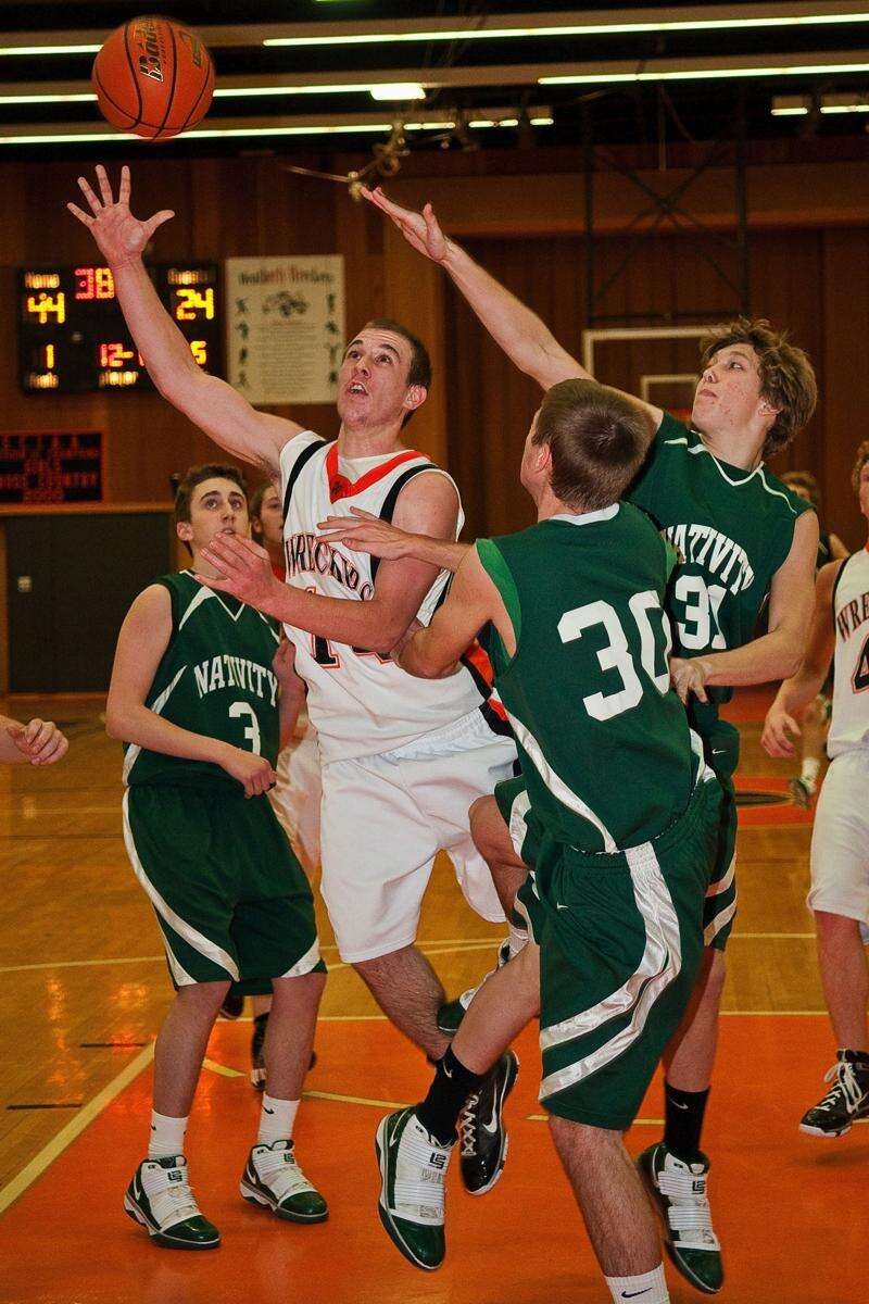 There was one game postponed by Friday winter weather. The Marian at Mahanoy Area game will be played today at 1 p.m.BOYS BASKETBALLNativity-WeatherlyBarna scored his 1,000th point at the 3:35 mark of the fourth quarter on a free throw and helped lead Weatherly to a 59-39 win over Nativity.Barna finished with a game-high 23 points and also picked up five assists and five steals. Fellow Wrecker Nate Pfeiffer added 19, while Brandon Rowand chipped in 11. Rowand also had nine steals.Nativity won the JV contest, 66-55.Weatherly improves to 7-3 (2-2) on the year.NATIVITYManzel 1-0-0-2, Federov 1-0-0-2, McCormick 3-0-3-6, Gasper 1-0-0-2, Z. Navitsky 3-1-2-7, Klinger 2-1-2-5, L. Navitsky 0-1-3-1, Coin 1-0-0-2, Straus 3-2-6-8, Verosick 2-0-2-4, Heckman 0-0-0-0, Hoben 0-0-0-0. TOTALS: 17-5-18-39.WEATHERLYBarna 7-9-15-23, B. Rowand 4-0-0-11, G. Wallish 2-2-2-6, Pfeiffer 5-7-10-19, C. Rowand 0-0-0-0, C. Wallish 0-0-0-0, Orminston 0-0-0-0, Valkos 0-0-0-0, Weichman 0-0-0-0, Harris 0-0-0-0, Hollrigl 0-0-0-0, Stalone 0-0-0-0. TOTALS: 18-18-27-59.Nativity 8 8 8 15 - 39Weatherly 21 17 11 10 - 59Three-Pointers: N - None; W - B. Rowand 3, Pfeiffer 2.Panther Vy.-Pine GroveAlthough Panther Valley was outscored 26-18 in the second half, the Panthers held on to defeat Pine Grove 45-44 in Colonial League action.The Panthers were led by Brock Mitchell and his 15 points. Damian Lewis added nine in the winning effort.Kyle Burke led the Cardinals with a game-high 17 points, with 15 of those points coming on five three-pointers.PANTHER VALLEYStanko 3-0-0-6, Mathewson 0-0-0-0, Revell 2-0-0-6, Picht 2-0-1-4, Lewis 4-1-2-9, Mitchell 7-1-4-15, Ahner 0-0-0-0, Stano 2-1-2-5. TOTALS: 20-3-9-45.PINE GROVEZimmerman 1-5-5-7, Hoffman 2-0-0-5, Smith 2-2-6-6, Rossi 2-0-0-4, Blouch 0-0-0-0, Bohn 0-0-0-0, K. Burke 6-0-0-17, B. Burke 2-0-0-5, Fehr 0-0-0-0, Hafer 0-0-0-0. TOTALS: 15-7-11-44.Panther Vy 13 14 5 13 - 45Pine Grove 9 9 8 18 - 44Three-Pointers: PV - Revell 2; PG - K. Burke 5, Hoffman, B. Burke.Pleasant Valley-PM WestWith the score tied at 39 heading into the fourth quarter, Keon Scott scored eight of West's 19 points and led the Panthers to a 58-47 victory over MVC foe Pleasant Valley.Scott finished with 18 points for West (7-2, 3-1). Fellow Panther JaQuan Bryant added 13.The Bears (4-5, 2-1) were paced by Mik Sharpe and his 18 points, including three three-pointers. Richie Irving was second on the team with nine points.PLEASANT VALLEYMcQuay 0-1-6-1, Conklin 0-2-3-2, Sharpe 7-1-1-18, Biney 1-0-0-3, Kregeloh 3-2-3-8, Irving 2-5-6-9, Stanovick 1-1-2-3, Wild 1-0-0-3. TOTALS: 15-12-21-47.PM WESTBryant 5-0-0-13, Fortune 1-1-4-4, G. Scott 0-0-0-0, Howard 1-0-0-3, Boyle 2-0-0-6, Brice 1-0-1-2, Anema 0-0-2-0, DuClair 0-0-0-0, Dixon 3-2-4-8, Halsey 0-0-0-0, Amoroso 2-0-0-4, K. Scott 8-2-4-18. TOTALS: 23-5-15-58.Pleasant Vy 7 21 11 8 - 47PM West 13 18 8 19 - 58Three-Pointers: PV - Sharpe 3, Biney, Wild; PM - Bryant 3, Boyle 2, Fortune, Howard.Palmerton-Saucon ValleyErik Frans scored ten on his 12 points in the second half and led his Saucon Valley team to a 46-34 Colonial League victory over Palmerton.Tyler Kravetz led the Bombers with 11 points. Teammate Christian Marcin chipped in with ten.Palmerton did manage to win the JV game in double overtime, 52-47.PALMERTONSnyder 0-2-2-2, Tyahla 0-2-2-2, Suetik 1-0-0-2, Furry 1-0-0-2, Haas 0-0-0-0, Freed 2-0-0-5, Marcin 5-0-0-10, Kravetz 5-1-2-11. TOTALS: 14-5-6-34.SAUCON VALLEYReitz 3-0-0-7, Poli 0-0-0-0, Remaley 2-0-0-4, Mosher 1-0-0-3, Frans 4-4-4-12, Okken 3-0-2-6, Clark 3-2-4-8, Kawalski 1-3-5-6. TOTALS: 17-9-15-46.Palmerton 4 4 13 13 - 34Saucon Vy 5 9 17 15 - 46Three-Pointers: P - Freed; SV - Reitz, Mosher, Kawalski.Northern Lehigh-PalisadesNorthern Lehigh had three scorers in doube figures and went on to beat Palisades, 53-44.Jordan Waylen led the way for the locals with 16 points. Evan Biegley and Nick Pappas added 14 and 13 points respectively.NORTHERN LEHIGHSeremula 0-0-0-0, Hahn 2-2-2-7, Glose 0-3-4-3, Waylen 5-5-6-15, Malaska 0-0-0-0, Biegley 6-2-2-14, Johnson 0-0-0-0, Pappass 6-1-2-13, Pierce 0-0-0-0. TOTALS: 19-13-16-53.PALISADESParris 7-4-5-19, Hess 5-0-0-12, Codd 4-0-0-8, Salva 0-0-0-0, Kalinkos 1-0-0-2, Mayette 1-0-0-3, Krchnavi 0-0-0-0, Thompson 0-0-0-0, Snyder 0-0-0-0. TOTALS: 18-4-5-44.No. Lehigh 12 12 12 17 - 53Palisades 6 11 12 15 - 44Three-Pointers: NL - Hahn, Waylen; P - Hess 2, Parris, Mayette.Northwestern-WilsonNorthwestern never scored more than seven points in any quarter and went on to lose to Wilson, 50-25.Kevin Oxley led the Tigers with eight points.NORTHWESTERNLerner 1-0-0-2, Nagle 1-0-0-2, Rivera 1-0-2-2, Roth 0-0-0-0, Koenig 0-1-2-1, Oxley 4-0-0-8, Collopy 3-0-0-6, Conway 0-0-0-0, Wagner 0-0-0-0, Betz 2-0-0-4, DeBruijn 0-0-0-0. TOTALS: 12-1-2-25.WILSONMonahan 0-0-0-0, McCoale 3-0-0-6, Parker 0-0-0-0, Cooper 3-2-3-8, Sostorecz 0-0-0-0, Scott 3-0-0-6, Parr 5-0-0-11, Spirko 1-0-0-2, Berger 1-1-2-3, Davidson 3-0-1-6, Nester 1-0-0-3, Lippincott 0-0-0-0, Rolek 0-1-2-1, Larson 1-0-0-2, Ulmer 1-0-0-2. TOTALS: 22-4-8-50.Northwestern 6 6 6 7 - 25Wilson 11 8 20 11 - 50Three-Pointers: NW - None; W - Parr, Nester.GIRLS BASKETBALLPalisades-Northern LehighNorthern Lehigh took Palisades behind the proverbial woodshed Friday night, as the Lady Bulldogs beat up on the Lady Pirates 47-17.The Bulldogs held the Pirates scoreless in the first half while scoring 34 points of their own.Aimee Oertner once again led the locals in scoring with 17 points. Teammate Sonya Josephson was close behind with 15.Northern Lehigh won the JV game as well, 36-27.PALISADESD'Emilio 0-0-0-0, Krapsho 0-0-0-0, McClintock 0-0-0-0, Beerer 2-0-0-4, Thatcher 2-1-4-5, Pyatt 0-0-0-0, Dickson 0-0-0-0, Stokes 0-0-0-0, Thompson 1-0-0-2, Sharo 3-0-0-6, Giovino 0-0-2-0, Sadow 0-0-2-0. TOTALS: 8-1-7-17.NORTHERN LEHIGHLeVan 1-0-0-2, Bastardi 3-0-0-7, Moore 0-0-0-0, Barnett 0-0-0-0, Stauffer 0-0-0-0, Harakal 0-0-0-0, Werley 0-0-0-0, L. Oertner 1-0-0-2, Josephson 5-4-5-15, A. Oertner 7-3-4-17, Howell 2-0-0-4, Seile