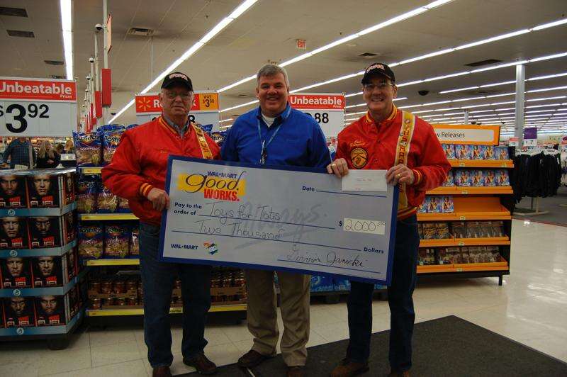 Girvin Janicki, store manager of Walmart Lehighton, took some time off from his other duties, to present a Walmart Good Works community grant funds of $2,000 to the Schuylkill-Carbon Marine Corps League. The funds will be used to support the 2010 Toys for Tots program. Last year the SCMCL presented toys to 2060 needy children (707 families) in Carbon and Schuylkill counties. From left are, Leon Frohnheiser, Janicki and Joe Balogosh.