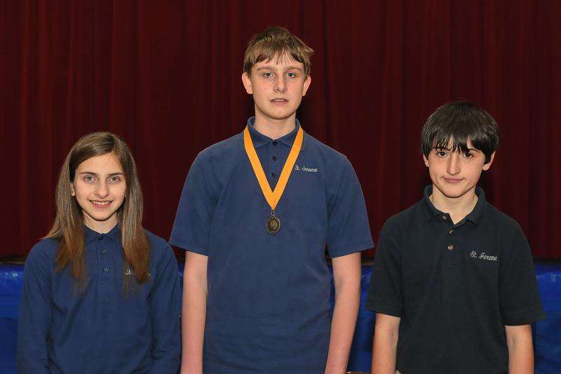 James Ostergaard an eighth grade student, won the Geography Bee competition for students in grades 4-8 at St. Jerome's Regional School in Tamaqua.