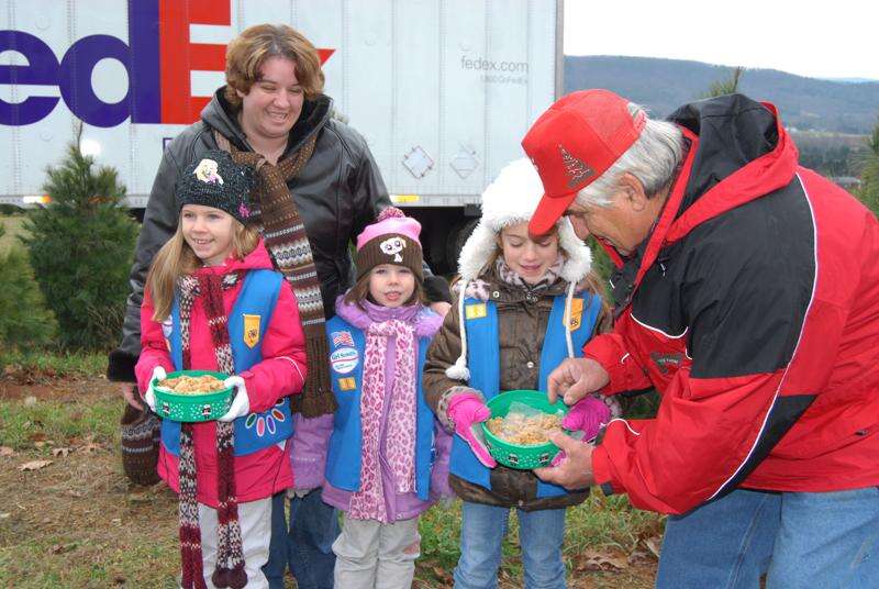 Daisy Troop 33 of Mahoning Township recently participated in the Trees For Troops program. A small troop of just six girls, they were able to collectively raise $250 which was enough to purchase 10 trees for the program. The girls also made homemade peanut butter whimsies to pass out to customers at Yenser's Tree Farm on the Trees For Troops weekend. From left are Bobbi Jo Shaffer, troop leader, Alicia Shaffer, Amanda Shaffer, Sophia Salerno, top money raiser of $200, and Drew Yenser co-owner of Yenser's Tree Farm, Mahoning Township.