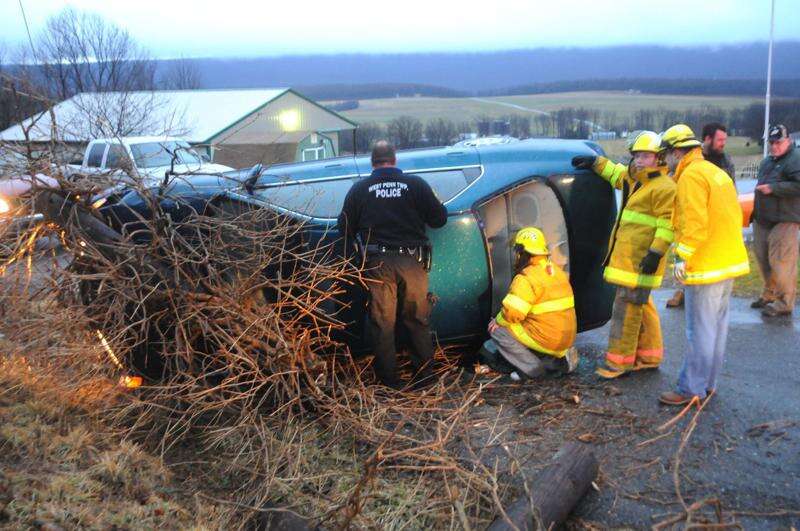A West Penn Township woman escaped injury this morning after her car struck a utility pole and rolled onto its side. Diane Schock, of Sycamore Lane, was operating her car westbound on Sycamore just east of Archery Club Road when she apparently lost control. Her car crossed over to the left berm where it impacted with and snapped off a utility pole. Her car then rolled onto its left side trapping Schock inside. She was trapped in the car until freed by township police and members of the West Penn Fire Company No. 1. Schock refused medical treatment at the scene. Schock was enroute to the Tamaqua Area School District where she is a substitute teacher.