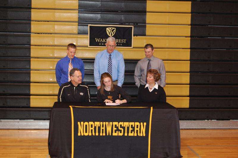 The Northwestern senior and 2009 Class AA state champion, signed a letter of intent Wednesday to run at Wake Forrest University.At a ceremony in the high school gym, with over a dozen friends and teammates forming a small audience for the event, Kerr reflected on her career and her finest season."It's real exciting," said the Northwestern senior and 2009 Class AA state champ. "It's also kind of sad. I really like the girls that I've spent the past four years with. The seniors this year, we were really close. The coaches, you form a relationship with them.""The season we had this year was the best season," said Kerr. It was a perfect season, 26-0 regular season champs, won leagues, won districts.To be third in the state is amazing and for me to win it myself, it was kind of icing on the cake."The chance to run for the Demon Deacons is the cherry on top.Kerr's high school accomplishments got her on the radar of several top college programs including Virginia, Virgnia Tech, North Carolina and Syracuse.She liked Deacons coach Annie Bennett, who she observed at Lehigh's Paul Short Invitational."She had a premeet meeting and I got to see her talk them through race strategy," Kerr said. "After the meet they had a sit down circle and they talked about what they could improve on and what happened in the race. I liked how she handled everything."Kerr took a visit to the Winston-Salem, NC, campus and got along well with the team then made her decision in late December.She hopes to make the top 7 or top 10 on the squad next fall and over her first few years become one of the team's top runners."I don't want to go in being the best," Kerr said. "I definitely want to go in somewhere in the middle. I like having people to have to work towards."Kerr's high school career went something like that. She was the team's No. 2 runner as a freshman and the top runner from there on.It took her just three years of high school running to become the best in her league and district. Her individual league record includes an 11th-place finish as a freshman, a second-place the next year and league titles in her last two years. Her district record is similar - 14th her first year, then second, first, first in her next three. At states, she took 99th in her first trip and 34th in her next. As a junior she vaulted to fourth place before winning the state title as a senior.Her team's success has nearly mirrored hers. It was a league runner up her first two years and a district runner up in two of her first three seasons. By Kerr's junior year she led the Lady Tigers to a seventh place finish at states, the team's best ever. Last season, behind Kerr's first-place finish, the team made history again, finishing third overall after capturing league and district titles.She heads to the next level hoping for similar success and with the work ethic to achieve it."She could probably jump into varsity her freshman year," said Northwestern head coach Chris Stitzel. "With her dedication and a good head on her shoulders. The kind of leader she was this year, I wouldn't doubt she could be a champion by her sophomore or junior year at Wake Forrest."