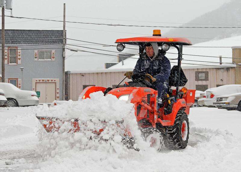 Tony Fannock, an employee of the ABC Hi-Rise in Tamaqua, clears the parking lot Saturday morning after nearly five inches of snow fell in the borough.