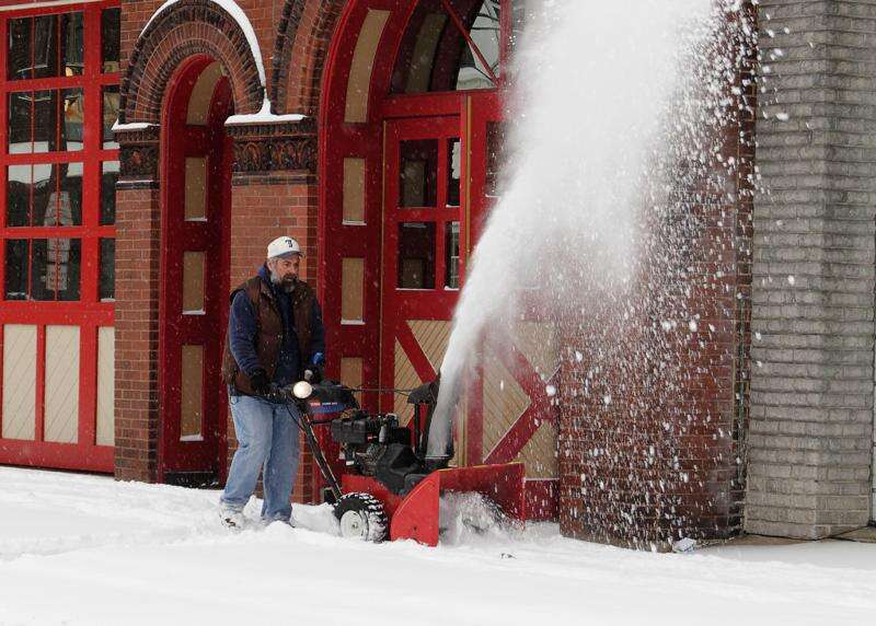 Rick Bennett, a trustee of the American Hose Company in Tamaqua, begins the task of clearing the fire company's sidewalk Saturday morning of the nearly five inches of snow that fell overnight in the borough.