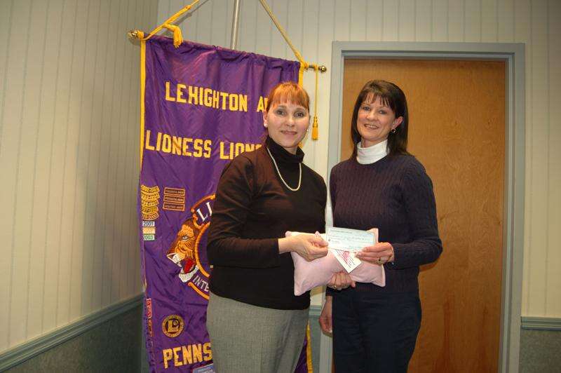 That is the message Woody, executive director of the Susan G. Komen for the Cure of Northeastern Pennsylvania Chapter, gave to members of the Lehighton Area Lioness Lions Club.She was one of two special visitors at the February club meeting. Also attending was Betty McCall, wife of state Rep. Keith McCall.Last fall, the club held its third annual Pink Light Walk, with Mrs. McCall, serving as honorary chairwoman. She and her daughter, Courtney, attended the event and Courtney presented each survivor with a pink pillow that she made herself.The pillows evoked a myriad of emotions in the women who accepted their gift.At the event, Mrs. McCall also donated a Breast Cancer Awareness Longaberger basket, which raised $700 through a raffle.Members of the club voted to have the proceeds of that basket raffle donated to the Susan G. Komen for the Cure Foundation and since Mrs. McCall provided the basket, she was invited to present the check of $700 to the local chapter.Accepting the check was Woody, who spoke about breast cancer awareness and on the new name of the organization. She said it was formerly known as The Susan G. Komen Breast Cancer Foundation. She said that since its inception in 1982, Komen has raised over $1.5 billion for research, education and health services, making it the largest breast cancer charity in the world.Woody said that the Komen organization is recognized as the leading catalyst in the fight against breast cancer, with more than 100,000 volunteers working in a network of 125 U.S. and international affiliates."Breast cancer touches almost every family," said Woody. She said what was exciting this year, in it's 20th year, is that Susan's daughters chaired the Race for a Cure, which is the largest single fundraiser for the organization.She said that while big strides have been made in treatments, there is still a long way to go in finding a cure.Woody noted that the funds will be used to provide grants for women in Pennsylvania who do not have health insurance, to have a mammogram.The Lehighton Area Lioness Lions Club supports many Lions and community projects annually.Anyone interested in learning more about Lehighton Area Lioness Lions Club or how to become a member, should call Gail at (610) 533-9311.
