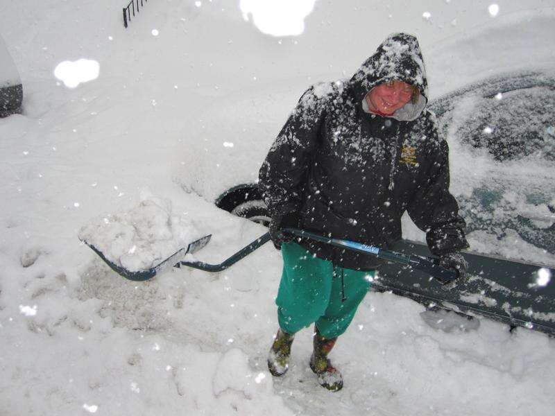 Shoveling with a smile