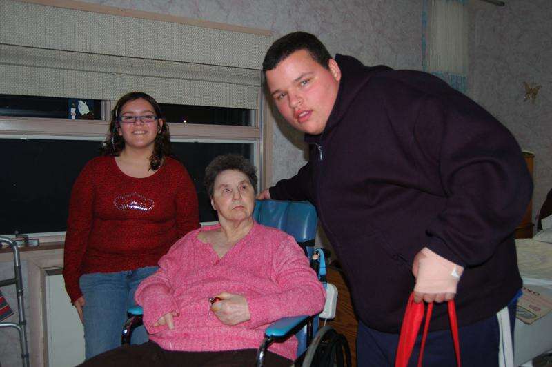 Felicia Sue Anthony, left, and a boy from Concern Treatment for Boys, make a presentation to Mary Frable, center, a resident of The Summit Nursing Home last Friday, just in time for Valentine's Day. Concern Treatment for Boys and members of Lehighton Area Lioness Lions Club sponsored the event. Presented to each resident was a valentine, a valentine ornament, candy and a rose.