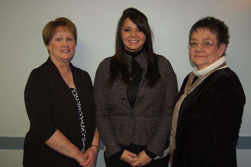 Amanda Kalce (center), the new administrative assistant for the Tamaqua Area Chamber of Commerce, is welcomed by Assistant Director Eileen Barron (left) and Executive Director Linda Yulanavage (right) during the chamber's breakfast mixer on Wednesday, Feb. 24 at the Tamaqua Elks Lodge. The chamber hired Kalce as part of its new management agreement with the Tamaqua Area Community Partnership.