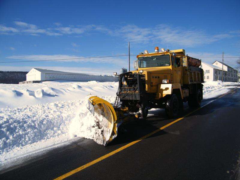 Cleanup of roads continued over the weekend from last week's snowstorm. Here a plow clears a road in Walker Township Saturday.