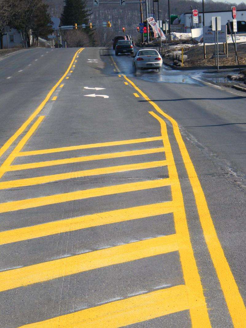 People familiar with Hometown were surprised this week when they found themselves driving south on SR309 towards the main intersection (SR309 and SR54) in Hometown. The new street markings force all SR309 southbound drivers to mergeto the right lane when approaching the intersection.