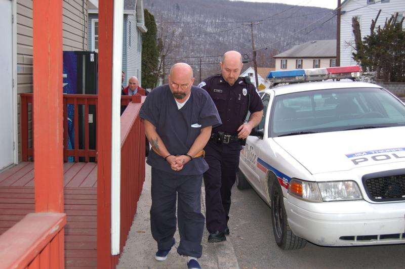 After listening to Jace J. Gill's testimony and that of the arresting officer, District Judge Edward Lewis of Jim Thorpe sent aggravated assault and related charges against Thomas Henry Smith, 52, of 4507 Three Mile Lane, Walnutport, to Carbon County Court.Lewis reduced Smith's bail from $500,000 to $100,000 straight cash. Smith's attorney, Stephen Vlossak, asked for the amount to be lowered, saying that Smith was not a flight risk. Assistant District Attorney James Lavelle was amenable to the reduction. Smith has no prior arrests, has family in the area and three children to support, Vlossak said.Lewis agreed that Smith was not a flight risk; however, he said he also had to "worry about the citizens of the area," thefore keeping the bail substantial. Lewis also said Smith may have to wear an ankle tracking bracelet if he posts bail.Smith, clad in drab prison blues and handcuffed and shackled, did not testify during the preliminary hearing, and Vlossak called no witnesses.Gill testified, at one point pulling up his pants legs to show the wounds in his legs. He was shot once in the front of the lower right leg, shattering the bone. He said he had to have emergency surgery to insert a rod in the leg, and that he would not be able to put weight on the leg for about two months. The bullets to his left leg hit the calf, damaging the tendons that allow him to move his toes, and in the upper thigh, which he said doctors told him had "just missed my femoral artery."Gill has been hospitalized since March 1, and was moved to a rehabilitation facility on Saturday.Speaking quietly and calmly, Gill said he is a Boy Scout leader and was in Allentown on March 1 for a Scout meeting when he realized he had forgotten papers he needed. He drove back to his home at 11 Lehigh Gorge Drive in the Leisureland section of Jim Thorpe to retrieve them. As he approached his home, he saw a black pickup truck in the driveway. Gill said he called his daughter, who lives nearby, to apprise her of the situation, and that he planned to park his vehicle in her driveway and walk down to his house to see what was going on. As he stood on the road looking down at his house, he saw his estranged wife, Judith A. Gill, on the porch with a man who was drilling into the front door lock.Under cross-examination by Vlossak, Gill said that he "had a suspicion" the truck belonged to Smith.Gill said he called his daughter and asked her to call 911, then walked onto the porch past his wife and confronted Smith.He said he was "looking at him for two seconds, asking myself, what am I going to do to stop him from breaking into my house?"Then, Gill testified, he punched Smith in the face.Smith went down, and Gill testified that Judith Gill was "on my back" grabbing his hair and pulling his head back. Suddenly, he said, "I had a feeling there was something wrong with my leg."He said he does not remember hearing a shot or seeing blood, but his leg was not "working" properly. He said he tried to get at Smith's arms to lower them, and that he realized there was a gun, but did not know in which hand Smith held it."The weapon was low, but it could have been aimed higher," he said.Gill testified Smith then shot him twice in the left leg."The pain was excruciating," he said. "I put my hand behind my thigh, and the blood was just pouring." He said he decided to stop fighting, and fell off the porch onto macadam. He recalled Smith saying "If you move, I'll put a bullet in your ing head."He testified that Smith also said "You're bleeding like a stuck pig. I hope you bleed to death" and "I hope you're crippled for life."Gill said Smith continually berated him as he lay bleeding. Judith Gill called 911, and as police approached, she began performing First Aid on his leg."It seemed like all (for) show," he said.Gill was flown to Lehigh Valley Hospital, Salisbury Township.Jim Thorpe Patrolman Michelangelo S. Bokeko testified that he received a call at the police station about a suspicious vehicle in a driveway at 11 Lehigh Gorge Drive. He received another call en route that a man had been shot.Under cross-examination, he said he had traveled about a mile from the station when he received the second call.Bokeko testified that he arrived to find Judith Gill applying pressure to Jace Gill's leg, and Smith standing nearby, with a bloody nose. Smith told him that he had shot Gill in self-defense after Gill attacked him.Smith's blood-covered Colt .45 semiautomatic handgun had been re-holstered and tucked under the driver's side seat of his truck.Smith was taken to the hospital for treatment. Under questioning by Vlossak, Bokeko said the man's hands were free of any injuries. Smith gave a written statement to a Lehighton officer, Bokeko said.Under questioning from Lavelle, Bokeko said Smith told him he had fired only two shots.