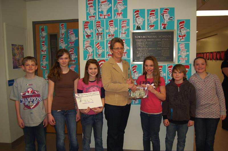 It was a celebration of Read Across America all week long at Towamensing Elementary School with many fun activities. One such activity was to come to school with Wacky Hair and Costumes. Students and staff could pay for the privilege to come to school with wacky hairdos and costumes from books or to just give a donation. The 6th grade Student Council collected $71.63 which they donated to the Palmerton Area Library. The library director, Diane Danielson, accepted the money and told representatives, left to right, Brock Moyer, Kendra Pekurny, Brianna Doherty, Jackie Tracy, Tyler Butz and Brianna Caravello, "Thank you, thank you, thank you. And please come to the library."