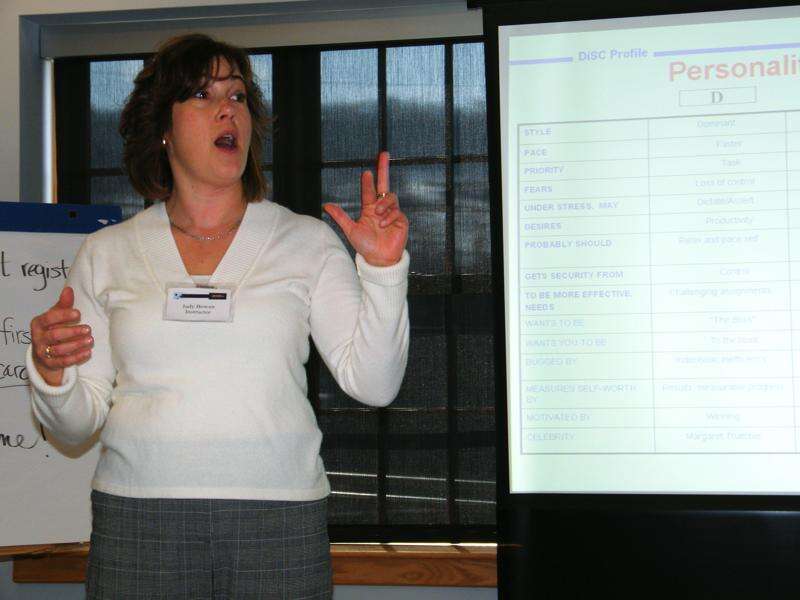 More than 20 Tamaqua area business owners and organization leaders attended the "Communicating Like a Leader" class held Thursday at the Lehigh Carbon Community College, Morgan Center in Tamaqua. The class was provided by the Tamaqua Chamber of Commerce, Lehigh Carbon Community College, and Tamaqua Area Community Partnership. This first of two classes was taught by instructor and consultant Judy Bowen of J. M. Bowen Company. The class stressed points of interest revolving leadership traits as well as understanding the pros and cons of working with, as well as using the use each type. Bowen's class evolved around four main leadership traits. These consisted of dominant, influencing, steadiness, and conscientiousness. All "students" took a personal profile system to find out what was their primary leadership style. A well leveled combination of each is usually the best form of leadership. The class was provided at a big discount or free to Tamaqua Chamber of Commerce members, community charity board members, and others in attendance. The second part of the class will be next Thursday. For more information about different affordable or free leadership type classes offered, call Bowen at 215-859-3308.