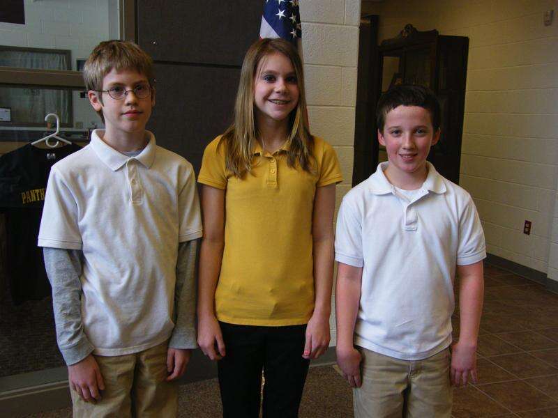The Panther Valley Middle School has announced its January Students of the Month. Left to right are sixth grade student, Justin Black,seventh grade student, Abbegail Whildin, and eighth gradestudent, Patrick Owens. Topstudents are selected from the student body for the distinction.