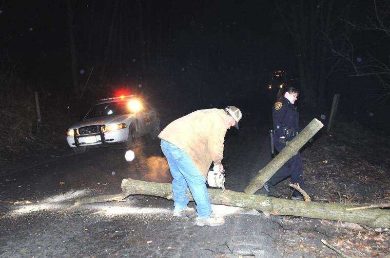Troxell Road in Mahoning Township was closed to traffic early Friday morning after a motorist reported to the Carbon County Comm Center he had collided with a fallen tree. The driver was traveling along the roadway just after 5 a.m. about a half mile south of Route 443 when he struck the tree which was lying across both lanes of the road. The driver was not injured. Officer Amy Barclay and a township worker using a chain saw cut the tree and removed it from the scene.