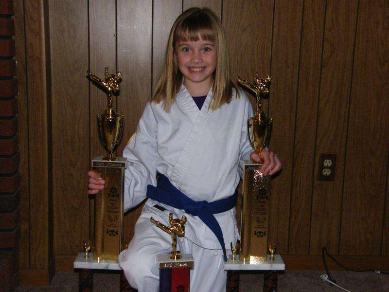 Christina Dacey, daughter of Ted and Lori Dacey of Nesquehoning, was awarded three trophies at the Coal Kicking Karate Tournament on March 7 at Marian High School. She is a fourth grade student in Mrs. Morgans' class at Panther Valley Elementary School and was the only girl competing with the boys in the tournament. She placed first in fighting, first place in form, and third place in weapons. She studies under Kevin Dillon in Nesquehoning. She presently wears a blue belt.
