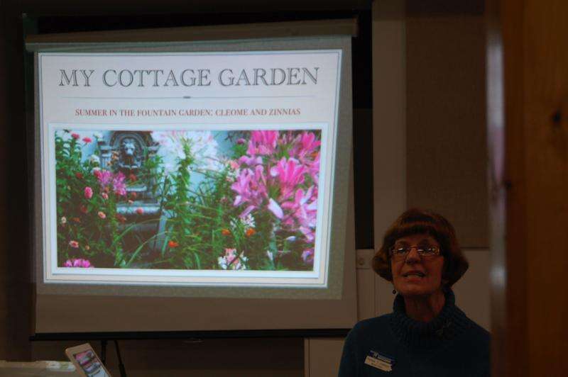 Pamela Hubbard, a Penn State Master Gardener, has turned her and husband's, Dwayne Hubbard, home on Astolat Road in Effort into a virtual English Cottage Garden paradise. Astolat Farm has been in her husband's family for 150 years but it didn't begin to bloom until Pamela and Dwayne married 30 years ago. Pamela designs the farm's gardens around a typical English Cottage Garden, of which she is very knowledgeable, having been born and raised in England. A retired school principal, Pamela earned her title of Master Gardener and loves to share her knowledge and tips on gardening through her program, "My Garden Through the Seasons." She shared many colorful slides of her gardens with the Western Pocono Women's Club's March meeting.