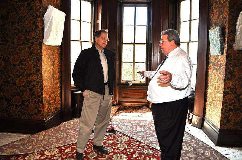 According to Ron Sheehan, Asa Packer Mansion executive director, the carpeting work, which was done by Ethan Allen Carpet and Furniture in Allentown, is part of the $500,000 overall Mansion Project funding which was secured with the help of state Rep. Keith McCall.The oriental-style carpet, which has a 13-inch border around the edges, replaces the carpet that was installed in 1910, roughly two years before Mary Packer Cummings passed away.They determined the age because when they lifted the old carpeting, there was a layer of newspaper underneath, and while a lot of it was destroyed just by the wear on the original carpeting, some of the newspaper remained legible enough to help them determine the age of the original carpet.Sheehan said that with all projects at the mansion, they archive a piece of the original material and also take "before, during, and after" photographs of the project. All of this is archived for future reference.He said this is the first project to be done with the $500,000 Mansion Project funding. The next projects will be to address heating and ventilation, and re-decking of the porch.After those two major projects are done, they will look at more interior projects to the home.Among some of the few remaining objects left in the library during the work were the ornate overhead chandelier and a massive steel safe, which was the original property of Asa Packer.The chandelier, which was put in by the Packers during the 1878 remodeling of the house in anticipation of their 50th wedding anniversary, was originally gas and came from the 1876 Philadelphia Centennial Exposition, where it took first place for Interior Home Lighting.The large safe, which bears the manufacturer's name of Remington & Sherman Co., as well as the name "Cummings," which was Mary Packer's married name, sits in an alcove on a pad of granite which is reinforced from below.Mary was the last person to live in the house until her death in 1912, so it has remained bearing her name.The 18-room, 11,000-square-foot mansion was built in 1861 by Asa Packer, an industrialist and philanthropist who served in the U.S. Congress, built the Lehigh Valley Railroad and founded Lehigh University.The home was donated to the borough in 1912 by Packer's daughter, Mary Packer Cummings, and was closed until 1956, when the Jim Thorpe Lions Club opened the mansion for public tours.It was named a National Historic Landmark in 1985 and is open to the public for tours seven days a week from Memorial Day through November.To learn more about the mansion visit