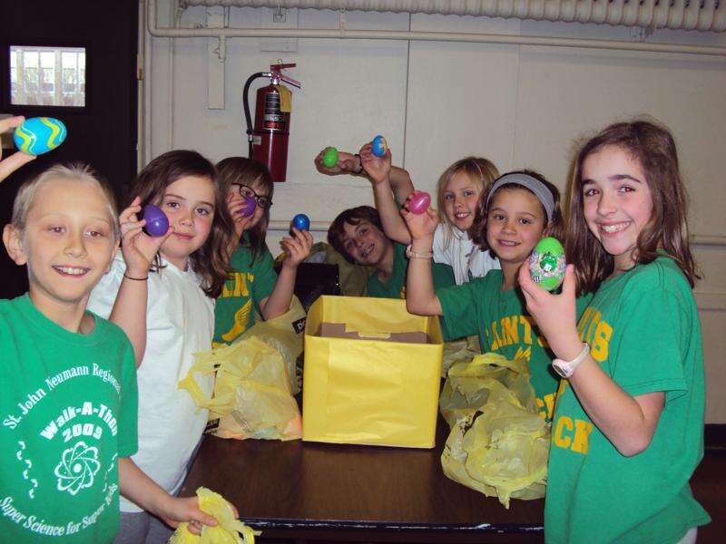 Third-grade students open up their eggs to see what treasures they'll unveil at the conclusion of the egg hunt held Tuesday at St. John Neumann Regional School. The egg hunt was open to students from both the Palmerton and Slatington campuses, grades K-12.