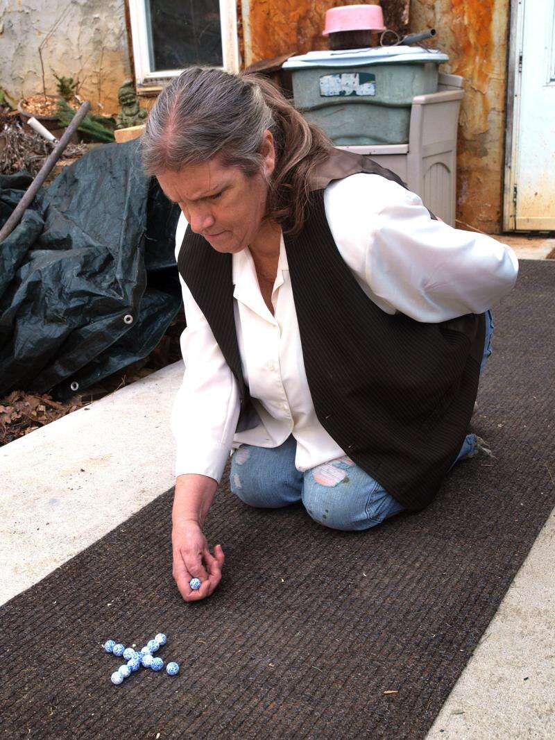 "Whenever I get a really bad night, rather than reach for medicine, I would rather reach for the box of marbles," she explained about her marble therapy.Living on an East Penn Township farm, from time to time Beckett found her goats or horses fidgeting and when they fidgeted, they occasionally stepped on her foot, usually her right foot. Four times, she visited the hospital, but all they could do was bandage her fractured toe.As she neared her 60th birthday three years ago, Beckett found that she could no longer kneel to work in her garden without feeling an excruciating pain in her right foot. She had her foot operated on and her doctor fused the bones of her second toe."They told me I wasn't going to regain total bone control," she said. "I was afraid of losing my other toes. That was what was happening for months until I went to Phoenix Rehab in Lehighton.Her therapist, Rachel, poured a box of marbles onto the floor."Take your shoes and socks off and pick up a marble and put it in the box with your toes,"she said."I didn't think much of it at first," Beckett said. "If I could do this at rehab, I could do this just as well at home."So, I went looking for marbles and I couldn't find the kind of marbles that I played with as a child. I couldn't find the Cat's Eyes or the Peltiers that I was more familiar with."In a craft shop, she finally located marbles - they were being sold as glass beads for hydroponic plants.She began picking up the marbles with her toes and found that after a while, she enjoyed picking them up while she was on the computer or watching television."I was thinking when I was a child, I used to have marbles," she said. "I said to my husband, Frank, 'I know we had marbles.'"She thought back to her post-World War II days of growing up in Bay Ridge, Brooklyn."I was four years old and I remember watching my sisters and cousins playing marbles," she recalled. "We walked four blocks to Owl's Head Park near the Staten Island Ferry."When she went to the park for picnics with her family, they played marbles on the grass. When she went with her friends, they played on the asphalt or the concrete.The game was played by putting 13 normal sized marbles - or "nibs" - into the circle and trying to knock them out of the circle using a larger one-inch "shooter" marble.When she was younger, Beckett engaged in "fair play," meaning every player had their marbles returned at the end of the game. When she was older, she played "for keeps" meaning that the winner kept the marbles.Marbles are played somewhat like pool. One ball is used to knock the other ball out of play. Michele was good at both marbles and pool.She was so good at pool, that one evening when she was playing it at the former Omrod Hotel near Egypt, Pa., a stranger put a quarter on the table, the price of a game of pool, challenging her."I had the table and he was arrogant and thought he could beat me," Michele said. "I said, 'come on' and I cleaned his clock. Back then, most men didn't take women seriously on pool playing."Michele met Frank from time to time at wherever there were pool tables. They soon planned to meet and play. Frank was fascinated by the lady who constantly bested him in at the table. Eventually, they married and bought their East Penn farm.Michele's first sport was marbles. Then it was pool, and now she's looking at introducing marbles to a new generation."I'm going to teach my grandchildren to play and tell others," she said. "It's an interesting game, and one we forget. We send them to a TV or computer. We forget how to play with children.""And for foot pains," Michele added, "I recommend marbles to people. It helps to get those muscles and tendons to work."