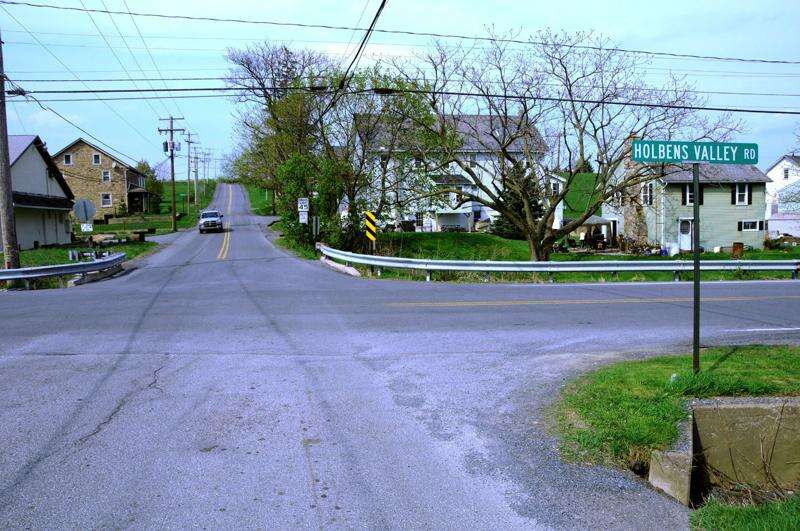 LARRY NEFF/SPECIAL TO THE TIMES NEWS The intersection in Lynn Township, where 11-year-old Shelby Grace Brown was struck by a car and killed Saturday afternoon.