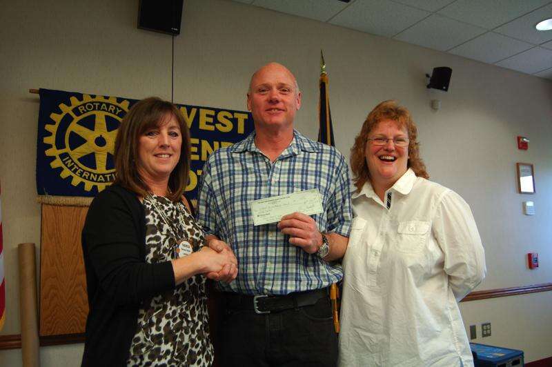 Left, Theresa Yocum, president of the West End Rotary Club, hands a check for $300 to Mark Baylis, director of the Effort United Methodist Church Supplemental Food Pantry, center and Ann Marie Bauer, former director and volunteer, as a donation to the pantry. Baylis said they will be using it toward a sign that will help bring in more people who need help. The pantry is for those who are having difficulties keeping their heads above water in these hard economical times. Bauer said the pantry filled 83 banana boxes full of groceries for the Easter holiday and purchased $2,900 worth of groceries and gave away $5,000 worth this Easter. "We thank you for taking the time to raise funds and for donating some of it to us," said Baylis.