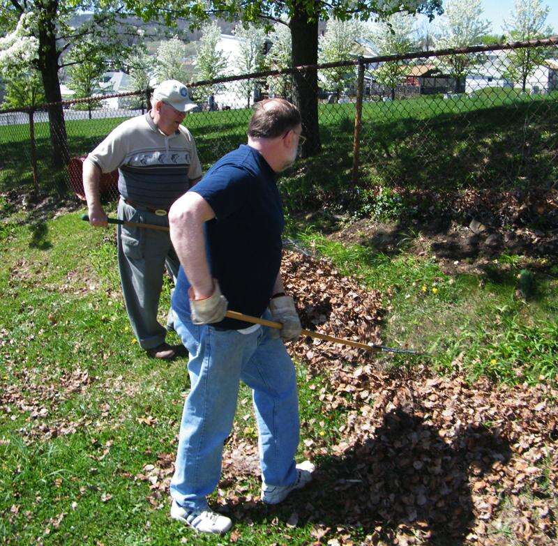 Volunteers from the Zion Evangelical Lutheran Church and community spent a couple of hours Wednesday cleaning the Zion Lutheran Cemetery in Tamaqua. Pictured from left are Paul Pecha and George Taylor.