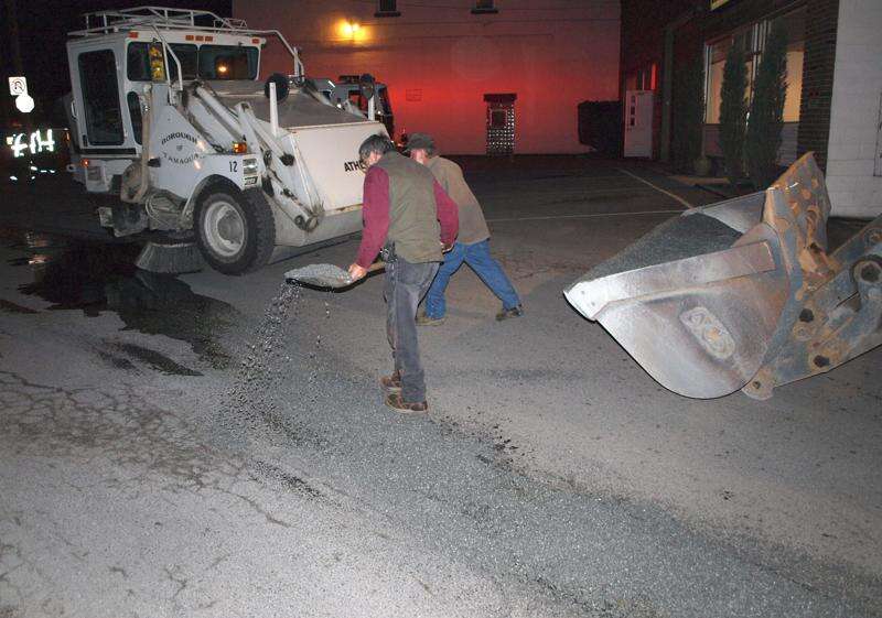 At 5:30 a.m. today the East End Fire and American Hose fire companies, fire police, borough police, and borough workers of Tamaqua responded to a half-mile long oil spill that started at the 100 block of W. Broad St. (near the Wachovia Bank on Berwick St.) to the 400 block of E. Broad St. at the borough garage. The long oil leak resulted from a broken oil line on one of the two street sweepers owned by the borough. Both fire companies started the cleanup and were later recalled as the borough used their dump loader and took charge of the lengthy cleanup. Fire police redirected traffic for the duration of the cleanup.