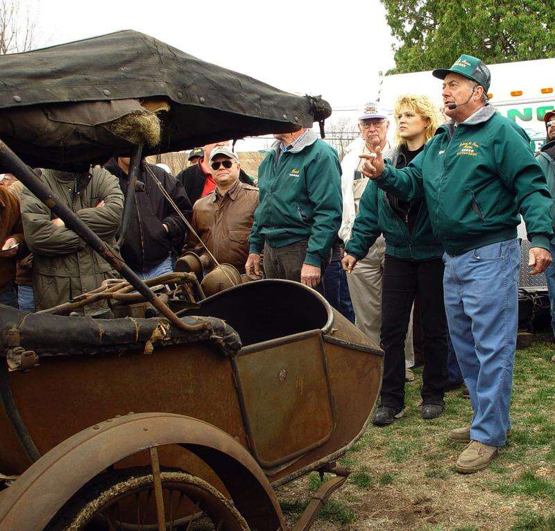 TN FILE PHOTO/DONALD R. SERFASS The late Robert A. Arner auctions off a lone surviving 1917 Harley Davidson motorcycle and sidecar in this file photo of April 6, 2006, fetching a high bid of $87,000. Arner passed away late last year but Arner Auctioneers will continue under the guidance of his wife and business partner Florence, assisted by auctioneer Donald P. Richard.