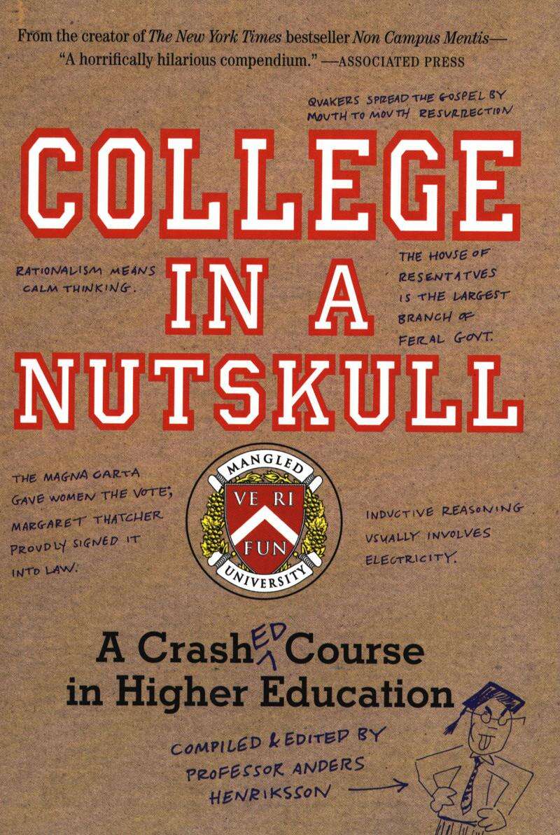 For me that laughter arrived unexpectantly in the form of about 130 pages of hilarity, unfortunately at the expense of the next generation of leaders here in the United States as well as abroad."College in a Nutskull: A Crashed Course in Higher Education" is a compilation of the work of some of today's college students, culled right from their actual exam books and edited by Anders Henriksson, chairman of the history department at Shepherd University in West Virginia. He has published numerous articles on student "bloopers" and has appeared on NBC's Today show, CBS Sunday Morning, as well as on National Public Radio.While reading this book, it is easy to imagine an unprepared student, attempting to make sense of a topic by dancing around the question. For example, when asked to describe two types of crimes, a creative co-ed's rambling response was: "Felonies are crimes that we might sometimes want to committ (sic), but the better part of deception tells us not to. Middle-sized crimes are known as mister meaners (sic). They are more serious than little stuff like mooning cars from the team bus."The spiral-bound book features 17 chapters, including Religious Studies, Music, Language, History, Political Science, Economics and much more.Here are a few more samples of some of the entries:Theology"Quakers spread the gospel by mouth to mouth resurrection."Psychology"Telepathy is a condition linked by scientists to excess cell phone use."Art"Rome was built in a day. Homes came with garden moratoriums. Amazing aqua ducks supplied fresh water."Government"Checks and balances are what the police do to catch drunk drivers."Economics"The goal of all bankers is to become transparent so they cannot be seen getting into trouble."While this might cause you to tremble at the thought of this next generation of thinkers running the world, Henriksson says take heart. It's not all that bad."The malapropisms, blunders, and skewed associations which comprise this book represent a tiny fragment of the student writing that my faculty contributors and I have read over the years," writes Henriksson in the book's introduction."For every student who thinks that Egypt, is an island or that the U.S. Congress is prohibited from making laws, there are scores of well-informed, articulate undergraduates eager to learn. Really!"So sit back, relax, pick up this book and enjoy."College in a Nutskull: A Crashed Course in Higher Education" is available at bookstores and through Amazon.com.