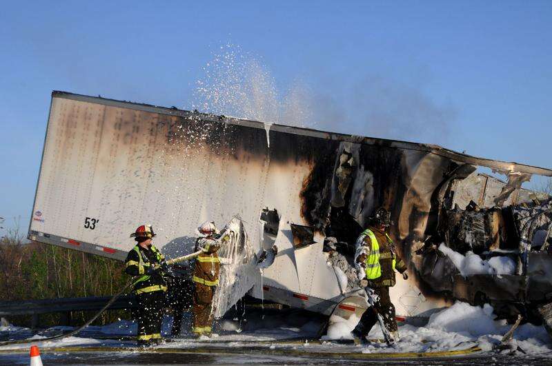 Firefighters were still on the scene early today of a stubborn tractor trailer fire along the south bound lanes of I-81 in Mahanoy Township, Schuylkill County. The fire was first reported at 3 a.m. in a rig along the south bound lanes at the 131 mile marker just north of the Mahanoy City exit. Fire companies from throughout eastern and central Schuylkill County battled the flames throughout the night and this morning, pouring thousands of gallons of water and foam onto the debris. No injuries have been reported. Tamaqua fire police were maintaining traffic control at the scene.