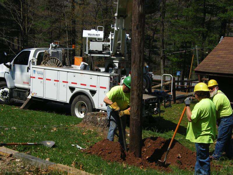 Plans are under way for the Nesquehoning Hose Company's annual Labor Day Festival, which will be held September 3, 4, and 5 this year. Even though this year's event is months away, this year's event is off to a strong start with employees and equipment from Palmerton Telephone Company. Palmerton Telephone Company, a subsidiary of Pencor Services, Inc. donated and installed poles throughout the grove for the fire company. Matt Evans, fire company president, stated that initially the electrical wires used for lighting were attached to trees. Now they utilize poles and clamps to make the job look neater and last longer.