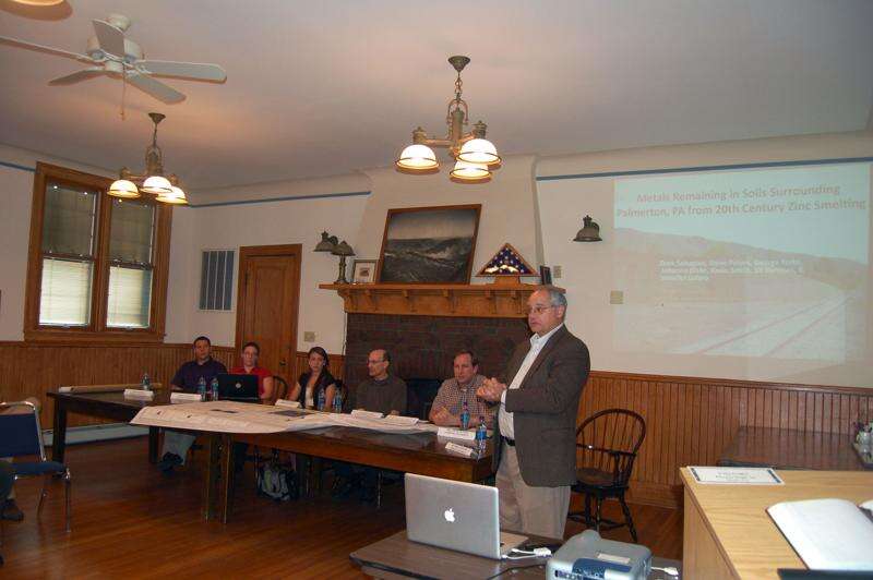 Based on the results of a recent study conducted by Lehigh University, metals concentrations are currently below the state Environmental Protection Agency residential standards in the borough and surrounding communities.Dork Sahagian, director of environmental initiative professor, Earth and Environmental Sciences at Lehigh University, shared the results of the study with borough council on Thursday.Sahagian was joined by Steve Peters, George Yasko, Johanna Blake, Jennifer Lofaro and Kevin Smith, who, along with Jill Burrows, studied the concentration and distribution of metals in the soil in and around the borough since 2006.He said the study was conducted through a Brownfields Assessment Grant sponsored by the EPA. As part of the study, samples were taken from 52 locations, some of which were up to 20 miles away, Sahagian said. From there, he said the samples were then analyzed and the data was scrutinized and interpreted.While some of the metals concentrations fall within distance from the West Plant, others do not, which suggests that there may have been other sources for these, Sahagian said.The airfall deposition of metals included zinc, cadmium, arsenic, and lead, he said. Of those, Sahagian said zinc and cadmium are highest near the west plant, while arsenic and lead were everywhere.The test checked the levels of metals in the soil, groundwater and river water that remained from emissions from the former New Jersey Zinc Co. smelter along the Lehigh River just north of the Kittatinny Ridge, he said.Sahagian said the results of the study shows that the West Plant has various isolated "hot spots", but not systemic contamination; the far field is basically down for residential or commercial uses; and while there may have been high soil concentrations of metals in the past, there aren't now.In addition, he said the levels of zinc and cadmium are clearly from the smelter, but that the levels of lead and arsenic have other sources; and that any concerns regarding economic development of the region need not be based on fears of metals contamination in far field soils.Council President Terry Costenbader appeared relieved by the results."This was a very nice presentation; I learned a little bit today," Costenbader said. "This really isn't as bad as we thought it was going to be."Sahagian concurred with Costenbader's sentiment."It turns out not so much, which is remarkable," Sahagian said. "It seems to be well within what's considered safe and reasonable environmental conditions."Mayor Brad Doll questioned whether the area was viable for use, to which Sahagian said it is right now.After his presentation, Sahagian presented borough officials with Earth Day T-shirts.Last week, Sahagian shared the results of the study with members of the Palmerton Area Chamber of Commerce.In addition to his work with the brownfield centered in the borough, Sahagian has conducted research in paleoclimatology, volcanology, stratigraphy, geodynamics and tectonics, global hydrology and sea level.He has also taught courses in Earth & Environmental Science, physics and astronomy, volcanology, human-climate interactions, stratigraphy and other areas related to his research and that of his students.Sahagian was also instrumental in establishing the new section of the American Geophysican Union in "Biogeosciences", and has directed his efforts to organizing and integrating a number of diverse research communities.At Lehigh, he is now working to integrate disparate disciplines in building the Environmental Initiative into a leading program for environmental science, technology, economics, policy and the many interactions between people and the environment.