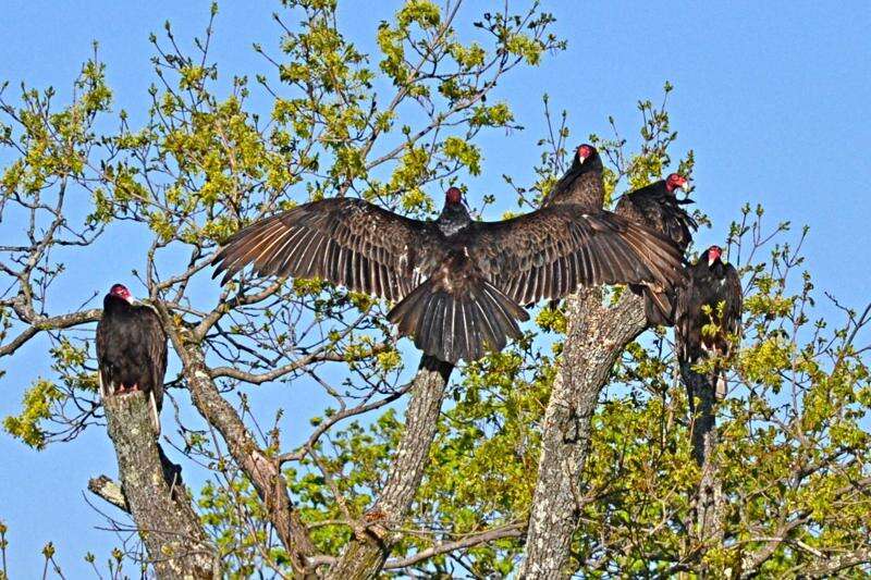 While appearing to just be "showing off" its large wingspan to its fellow TurkeyVultures, these "Eagle eyed"critters on the East Side of Jim Thorpe are just catching themorning Sun's rays to warm up for a day of flight and scavanging road kill throughout the area.