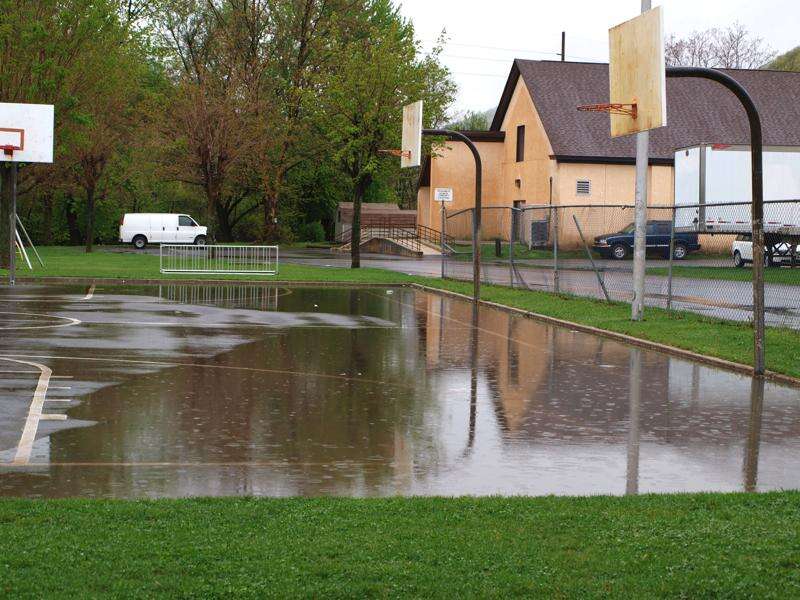 Pictured is the Willing Park basketball court in Tamaqua Monday morning filled with water from Sunday night's heavy downpours.
