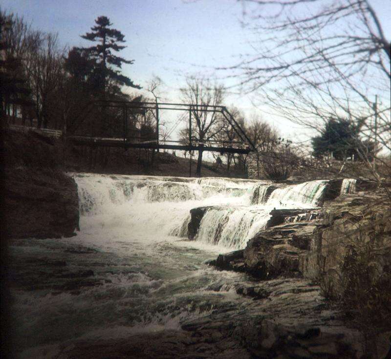 Dozens of members toured the remains of some of the tallest canal locks ever constructed; listened to discussions about the canal and the towns and industries they supported; and viewed a series of circa mid-1920s glass slides.National Canal Museum historian Lance Metz presented images of the Upper Grand Division of the Lehigh Canal taken from a set of 50 glass slides photographed by George Atwell Richardson of Bethlehem.In the 1970s, with Richardson was in his eighties, he gave the slides to the Pennsylvania Canal Society through its representatives Harry Rinker and John P. Miller. Miller is the author of The Lehigh Canal: A Thumb Nail History, 1829-1931-which was written in 1979 for the Sesquicentennial of the opening of the Lehigh Canal.The slides were taken with a four-inch by five-inch camera in black and white, and hand-tinted before mounting. Metz noted that this was the last public showing of the slides. Soon, the images will be transferred to digital media and the originals retired to the archives of the Museum.Before beginning his presentation, Metz discussed the difficulty of using the glass slides. He noted that they were fragile, sensitive to moisture, and subject to overheating in the vintage projectors.The presentation provided a summary of the history of the Lehigh Canal with particular emphasis on the Upper Grand Division. In the audience was an additional resource, Joan Gilbert - author of Gateway to the Coalfields - The Upper Grand Section of the Lehigh Canal.The slides began with an overview of Carbon County and its relationship to the anthracite regions of Pennsylvania: the Great Northern Wyoming Field, the Eastern Middle Field around Hazleton, the Western Middle Field, and the Great Southern Field in Schuylkill County.Then the slides highlighted Lehigh anthracite pioneers Jacob Weiss - who purchased 10,000-acres for the Lehigh Coal Mine Company, and Josiah White, the founder of the Lehigh Coal & Navigation Company. Their development of the Great Mine in Summit Hill created the initial need for a canal system to deliver coal to Philadelphia. That was achieved in 1827. Around 1838, the Lehigh Canal Upper Grand Division extended it to White Haven to connect with coal coming to it by railroad from the Wyoming Valley.The most northern point of the navigation system was at Stoddartsville, a hamlet constructed to use the hydro power of the Great Falls of the Lehigh River to mill Wyoming Valley wheat into flour. Several one-way "Bear Trap" were installed between there and White Haven for this purpose. Richardson captured the remains of these locks which have since virtually disappeared.Even when Richardson captured these images in the 1920s, the Upper Division had been out of operation since 1862, when heavy rains caused a million board feet of stored lumber to cascade down the river, destroying most of the stone-filled wooden cribbing dams. After that "freshet," only two dams were rebuilt: the dam above White Haven, which was used to power saw mills, and the dam above Mauch Chunk.Perhaps the most significant of the slides was of Lock #27 near the Lehigh Tannery. It had a lift of 30-feet, the highest in the system, allowing canal boats to pass through a 306-foot wide dammed section of the river.At Penn Haven, Richardson captured a rather unique railroad town. Although families lived in the approximately 25 buildings at the village, there were no roads to it. It was among the twelve communities east of the Mississippi River that could only be accessed by railroad. In its history, Penn Haven was the junction of the Central of New Jersey, Lehigh Valley, Beaver Meadow, and Hazleton Railroads.Following Metz's presentation, Gordon Perry presented views of lock ruins and canal features as they currently appear. On Saturday and Sunday, members of the Society toured the Upper Grand Canal, Stoddartsville, the Weatherly Lehigh Valley Railroad shops, Glen Onoko, the Mount Pisgah Plane, the Switchback Gravity Railroad, and the Mauch Chunk Museum. John Drury and Michael Nonnemacher of the Mauch Chunk Museum gave a presentation on historic Mauch Chunk.